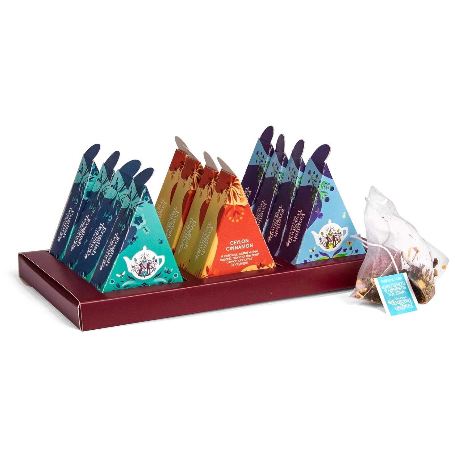 12 Pramidenbeutel als Geschenk für jeden Anlass verpackt.
